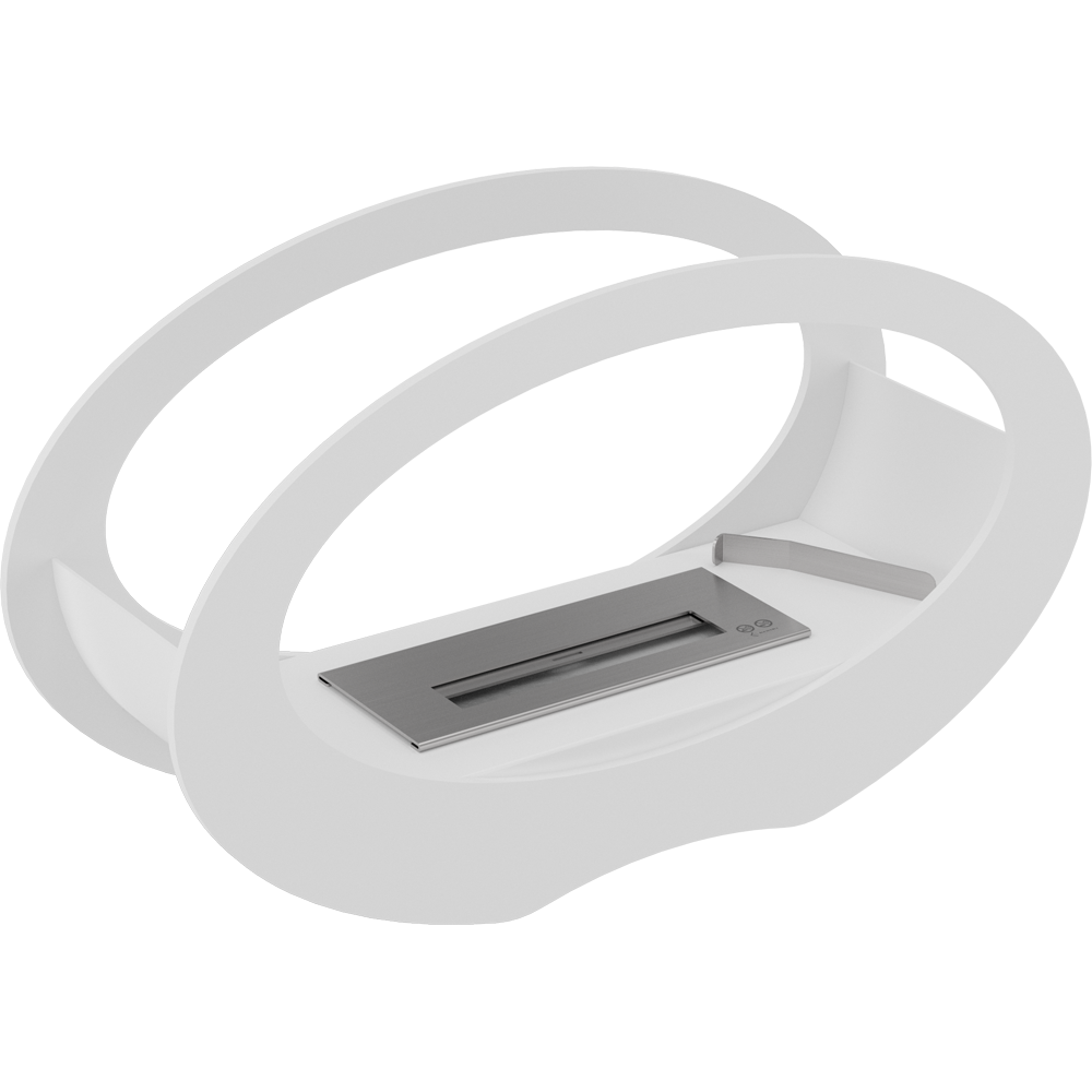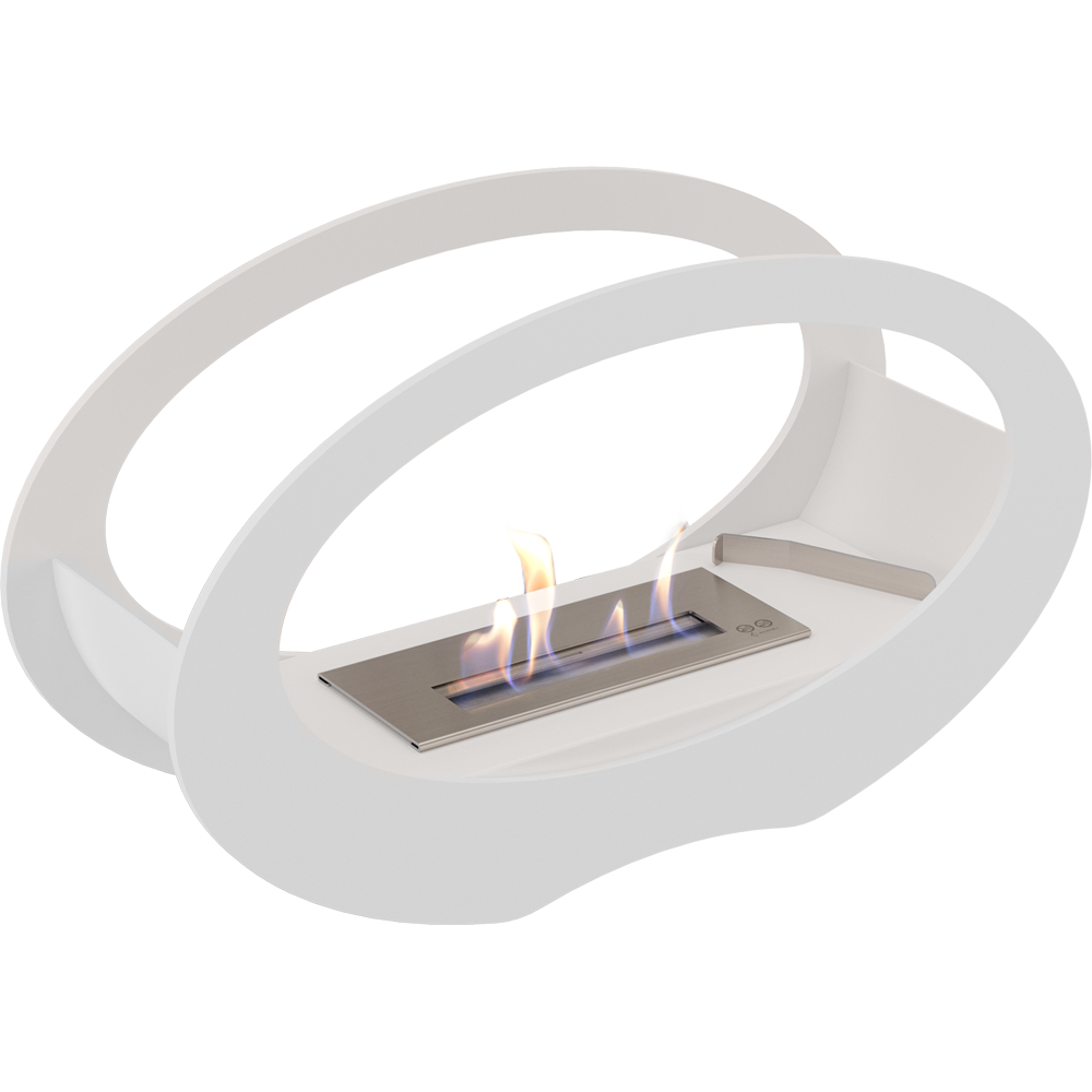 Bio lareira decorativa blanca a bioetanol, sin chaminé, con diseño moderno y formato compacto para criares chama real y un ambiente acogedor en cualquier división.