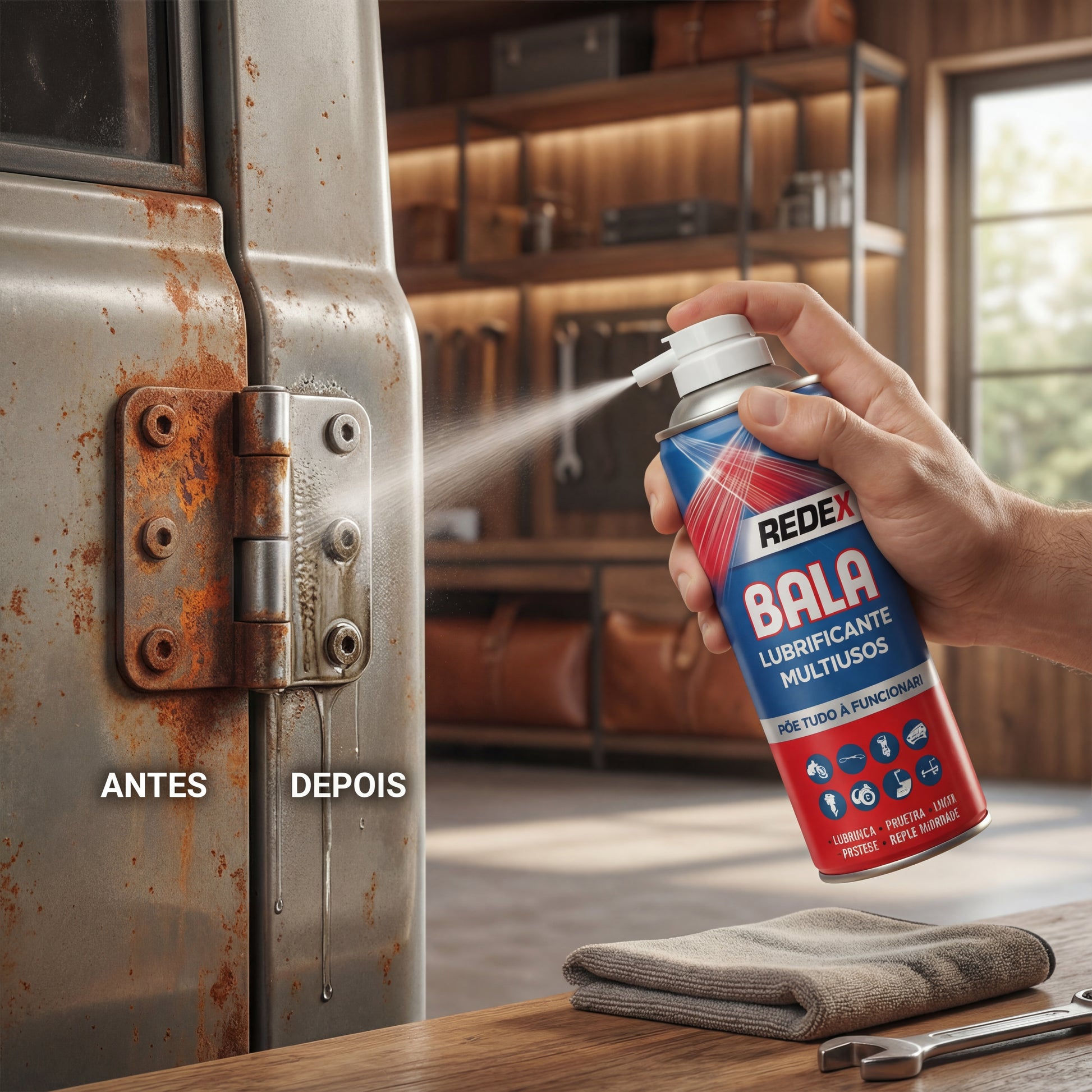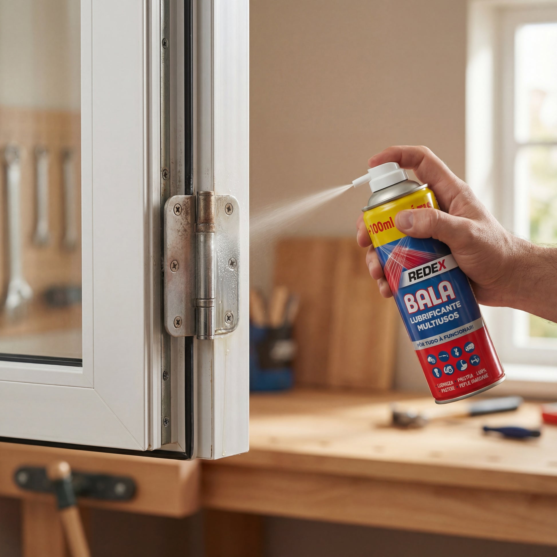 Desengripa parafusos, expulsa humidade e lubrifica mecanismos leves (fechaduras, dobradiças), reduzindo ruídos.